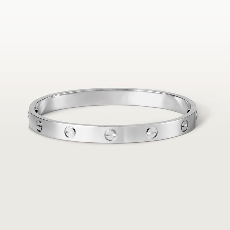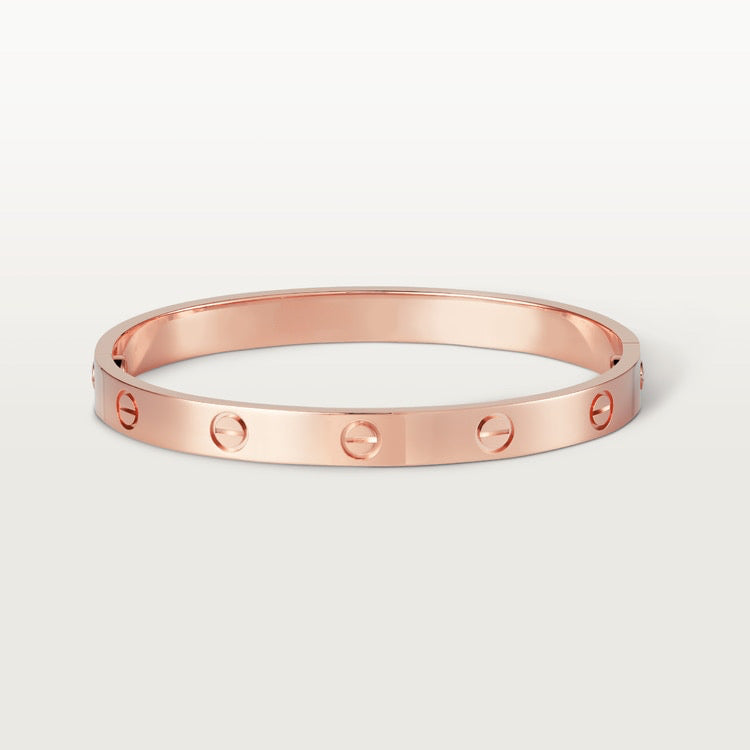 If you are looking for the perfect bracelet with a touch of luxury and sophistication, you found it! The Love Bracelet is sure to turn heads and make you look beautiful. It's the perfect way to show your love and commitment to your loved one. Not only is it stylish, but it also features a unique screw-on lock technology that allows you to wear the bangle and screw to lock and unlock. A true masterpiece to wow your onlookers. Made out of stainless steel and plated with 18k gold, this bracelet is both sturdy and striking. With its simple yet stylish design, the Love Bracelet is perfect for any occasion.
